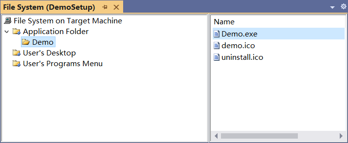 鼠标右击图 6 中的 DemoSetup 项目名,依次选择“View -> 文件系统”,可以看到 3 个文件夹:- Application Folder(应用程序文件夹):放置制作安装包所需的所有文件,包括可执行文件、库文件、icon 图标等;