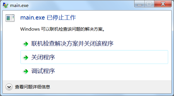 在 C-Free 5.0 下运行,会弹出程序停止工作的对话框: