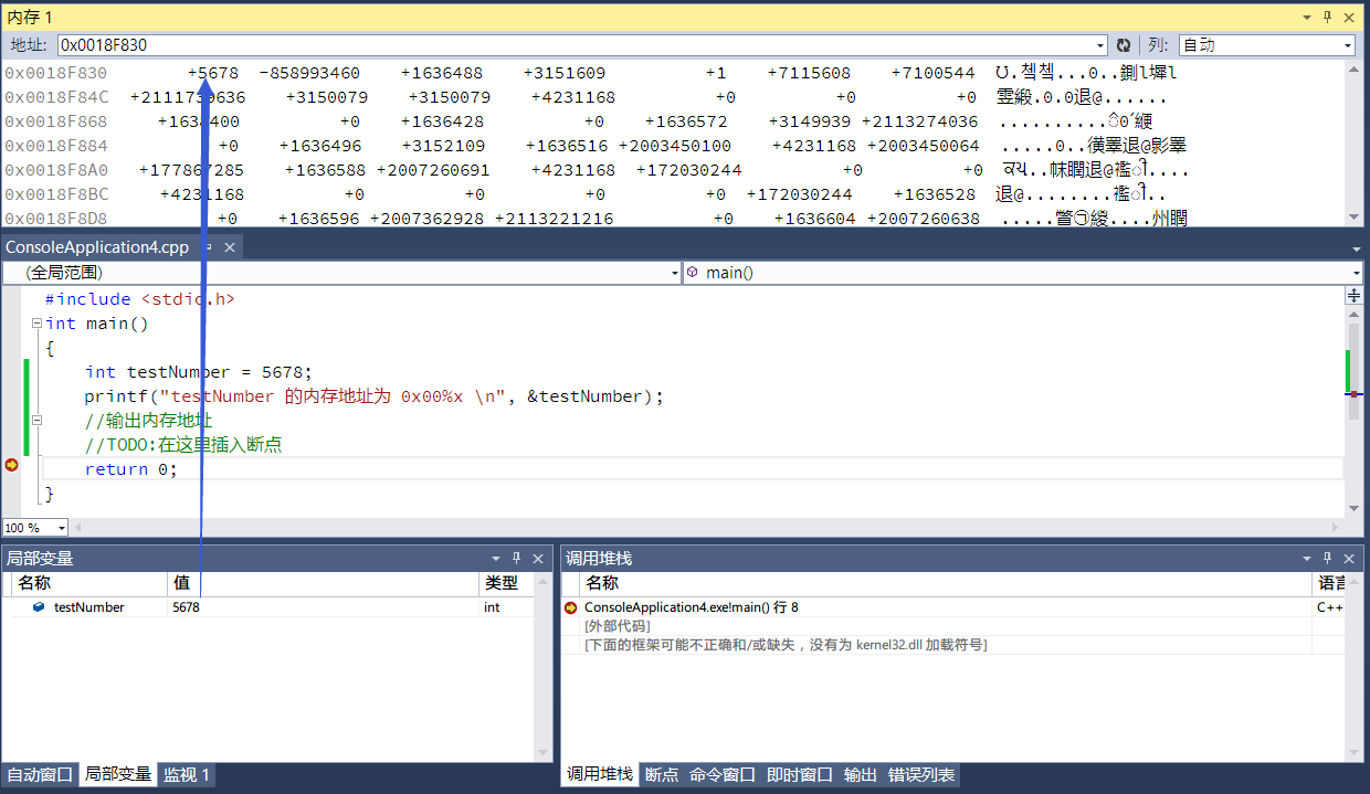 首先我们通过内存窗口查看变量的值,我们启动 Visual Studio,创建一个工程,输入如下代码: